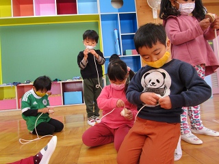 | 年長児 ボール2個使ったドッジボール 「きた! あっ、もうひとつ来る!」 |